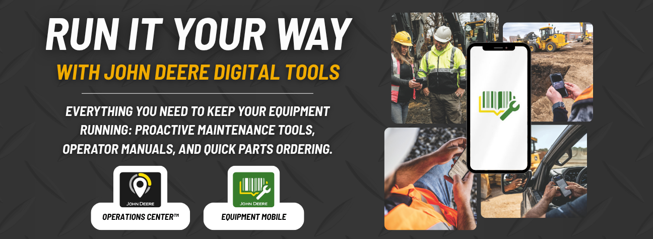 In construction, keeping your equipment running is everything. That’s why John Deere offers digital tools designed to simplify fleet management and maximize uptime. With John Deere Operations Center™ and Equipment Mobile™, you get everything you need to keep your equipment running—proactive maintenance tools, operator manuals, and quick parts ordering—all in one connected ecosystem.